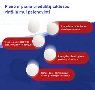 Viena Avitale Lactase 28000 FCC tabletė suskaido apie 44 g laktozės.
