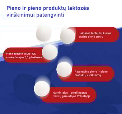 Viena Avitale Lactase 3500 FCC tabletė suskaido apie 5,5 g laktozės.