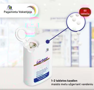 Viena Avitale Lactase 3500 FCC tabletė suskaido apie 5,5 g laktozės.