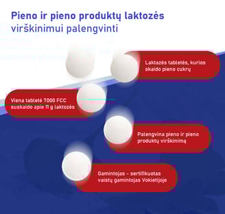 Viena Avitale Lactase 7000 FCC tabletė suskaido apie 11 g laktozės. Laktazė pagerina laktozės virškinimą žmonėms, kuriems jos ypač reikia.