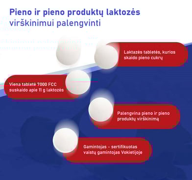 Viena Avitale Lactase 7000 FCC tabletė suskaido apie 11 g laktozės.