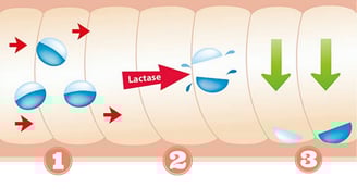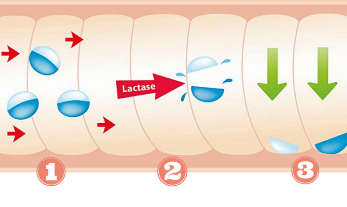 Fermentas laktazė skaido pieno cukrų laktozę iki gliukozės ir galaktozės, o šios medžiagos yra absorbuojamos į kraują. Jei laktozė negali būti suskaidyta plonojoje žarnoje, organizmas negali jos panaudoti, tuomet kartu su maistu ji patenka į storąją žarną, kurioje laktozę veikia storosios žarnos bakterijos. Šio proceso metu išsiskiria dujos, todėl jaučiamas pilvo pūtimas, žmogus gali viduriuoti ar pasireikšti kiti nemalonūs simptomai.